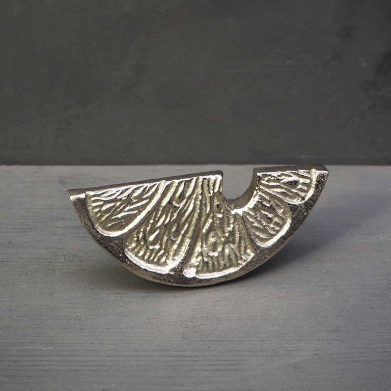 Abrebotella de metal plateado con forma de limón. Un regalo funcional y original.