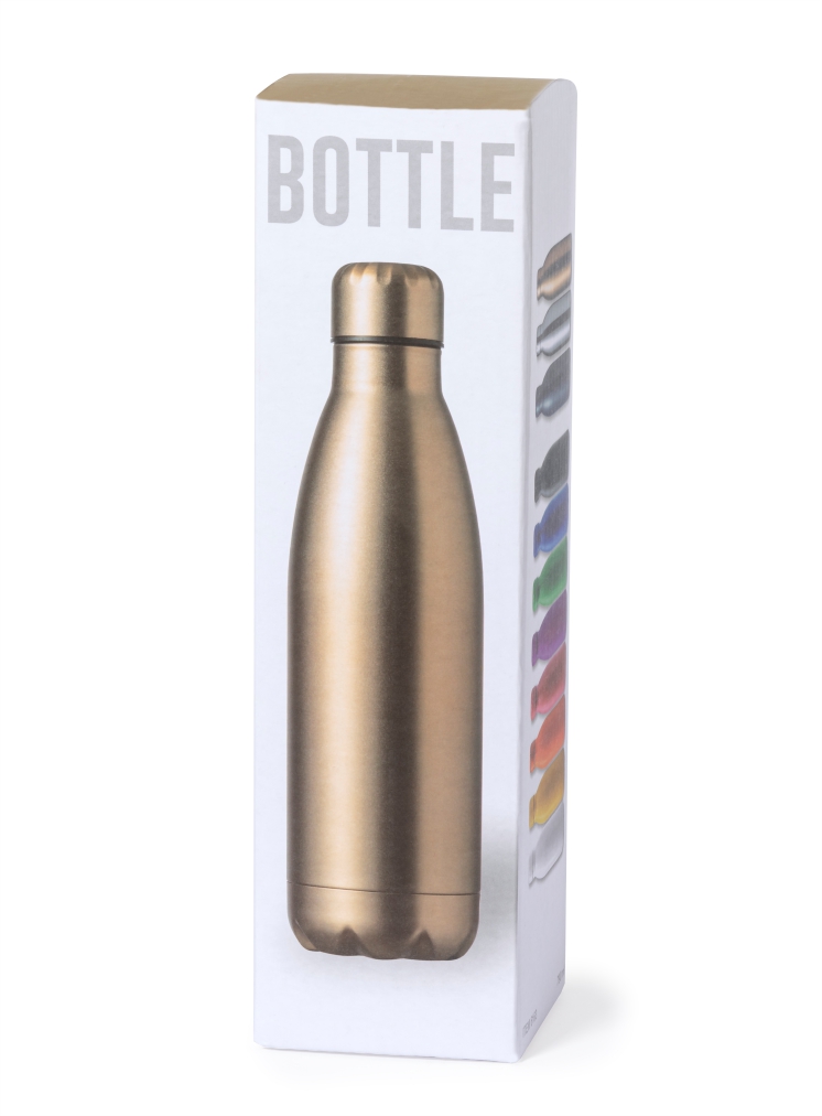 Botella/bidón fabricado en acero inox de 790ml. Con tapón de seguridad a rosca. De original acabado completo mate en vivos y variados colores. Presentación en atractiva caja de diseño.