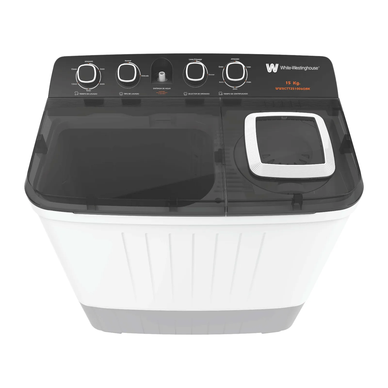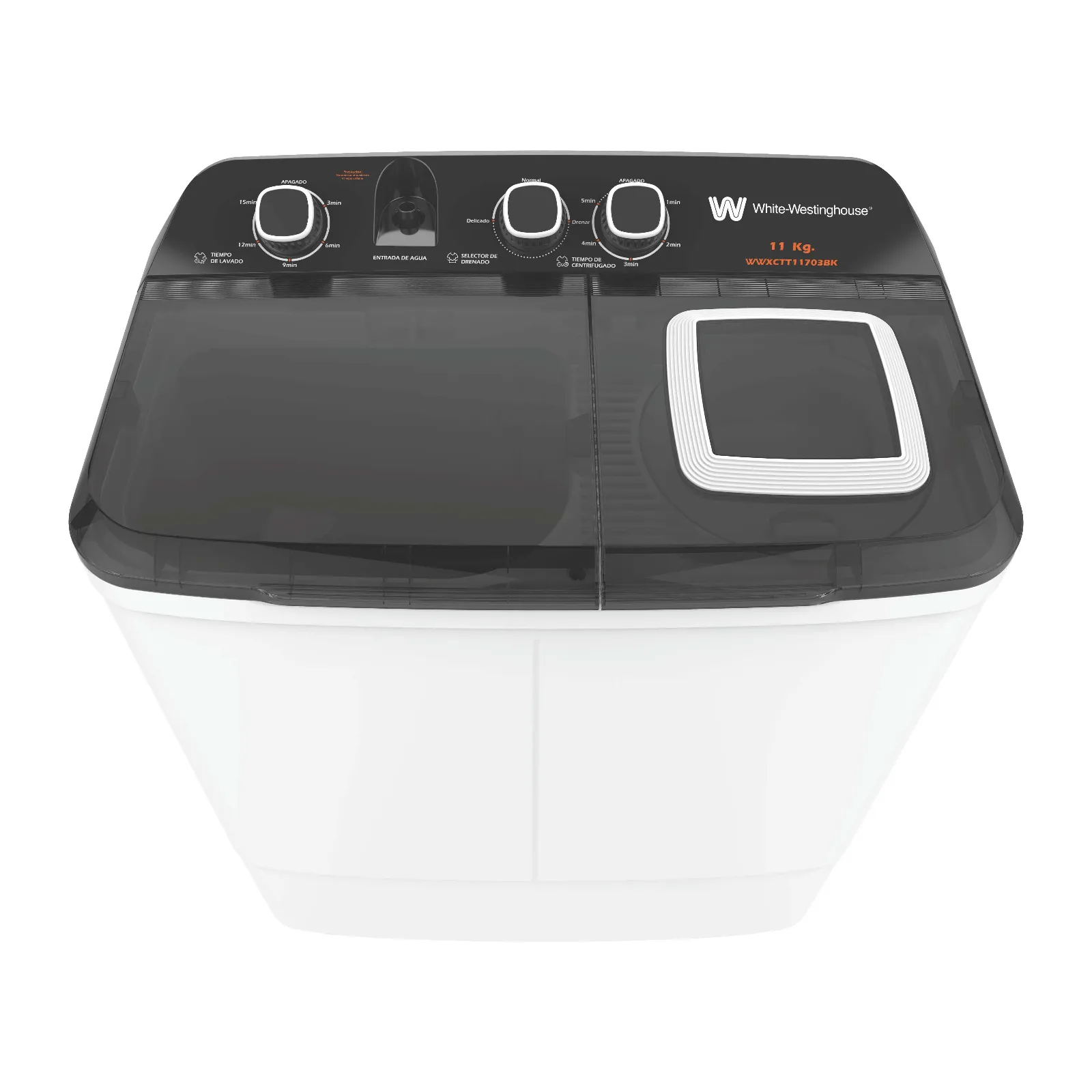 Agitador de 3 aspas en espiral y 4 programas de lavado. Timer automático de programación de 0-20 min. Tapa «Lava-Talla» de plástico.