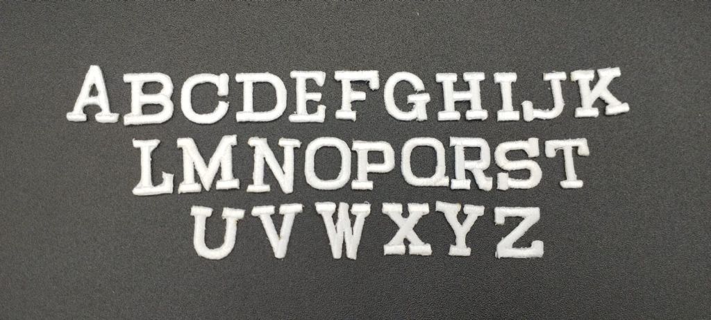 Letras y números bordados en blanco, termoadhesivos.
