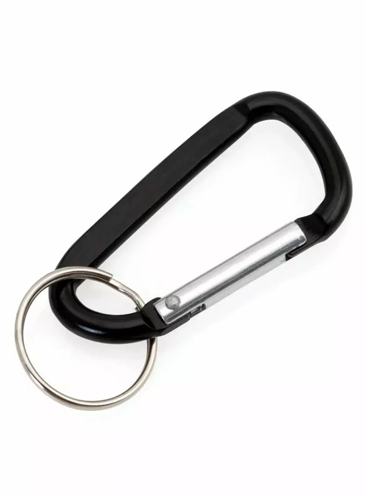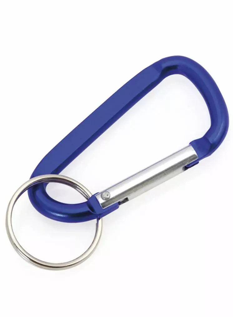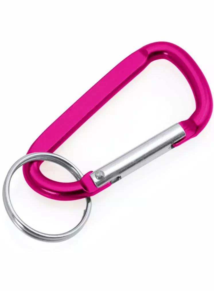 Llavero Mosquetón de aluminio con cuerpo en suave acabado de vivos y variados colores. Con anilla.