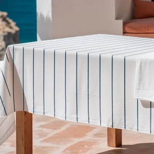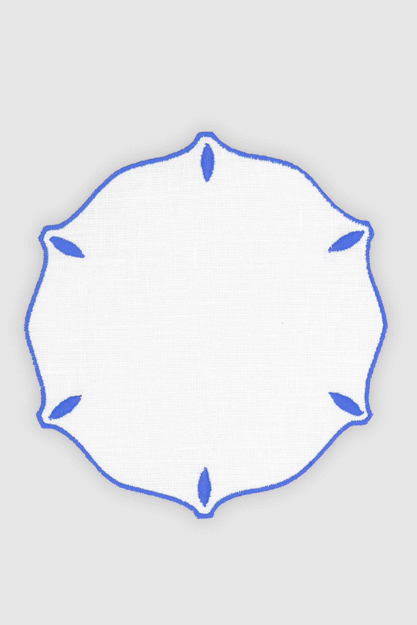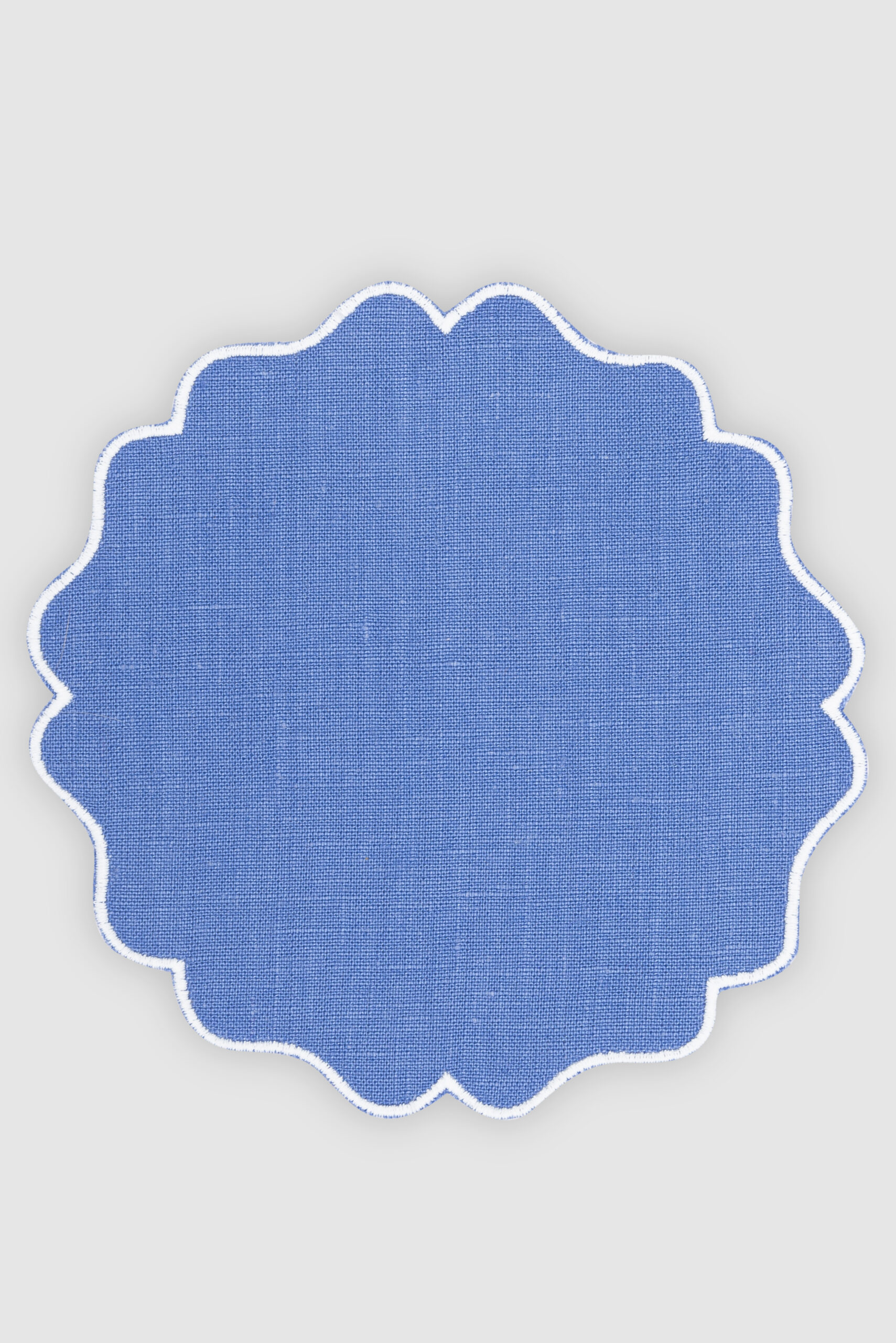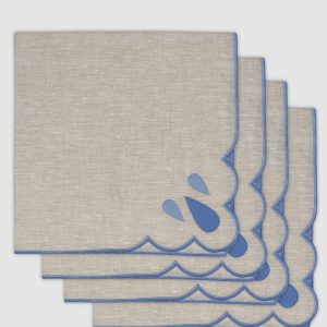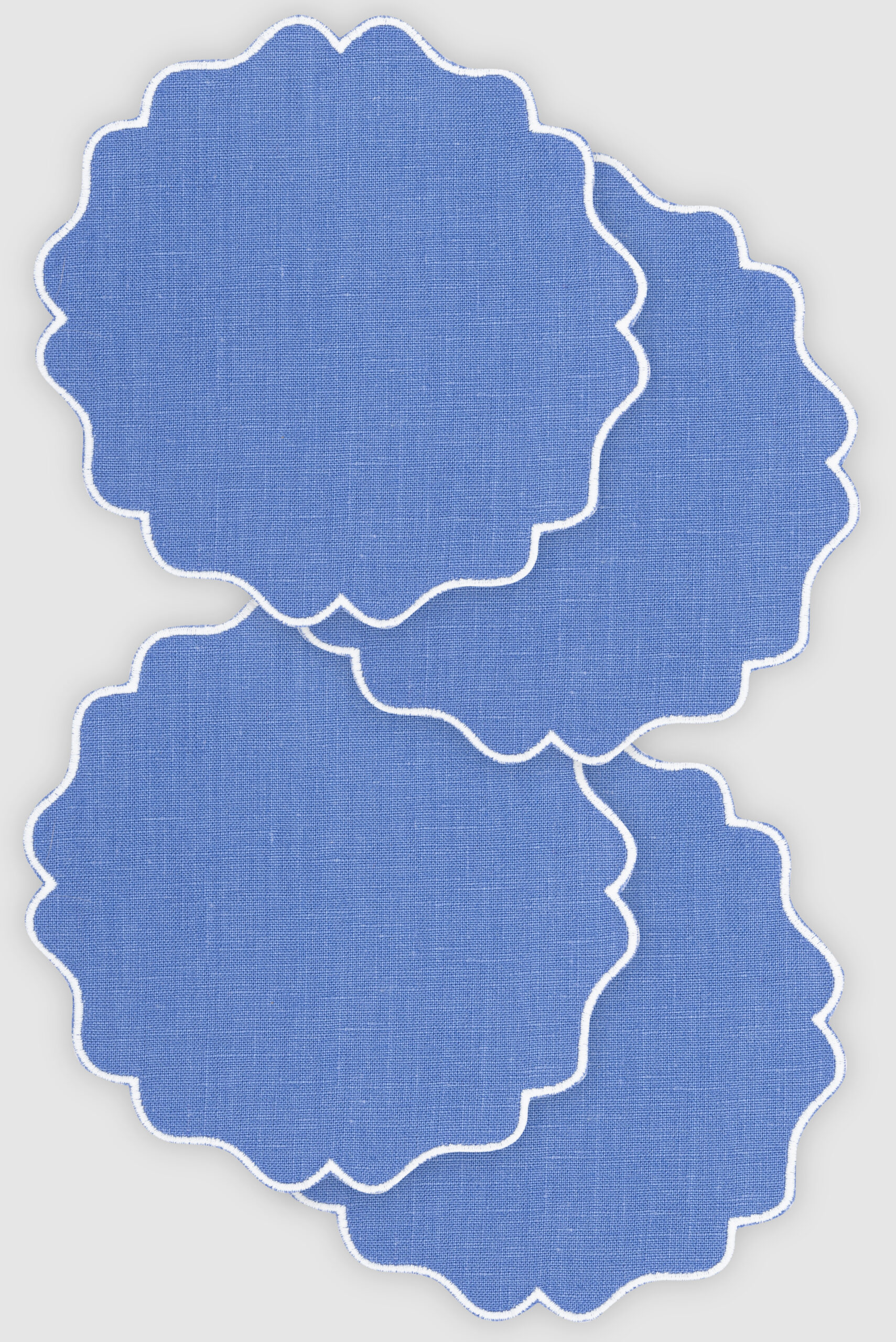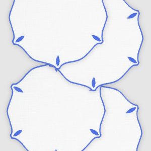 Pack de 4 paneras de lino azul palacio con festón blanco. Ideales para los platos de pan o para utilizar como posavasos.