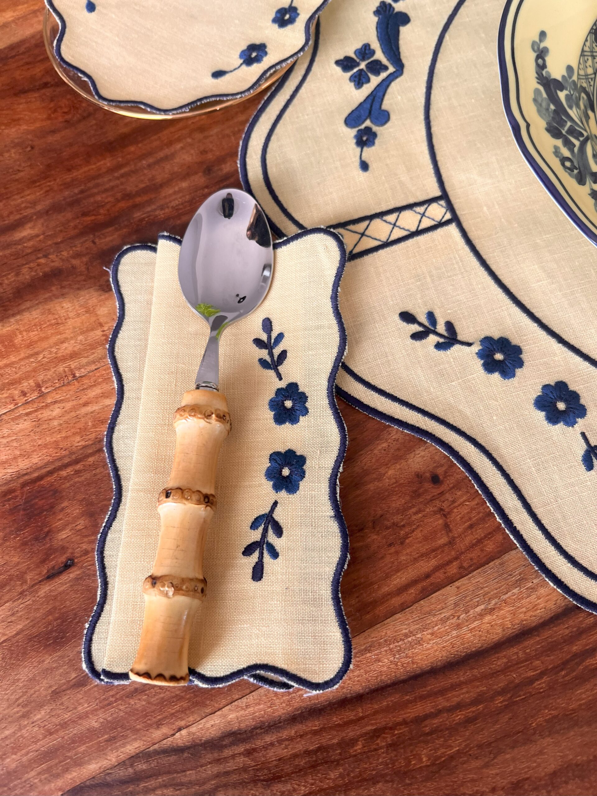 Pack de 6 individuales + 6 servilletas de lino bordados a mano.